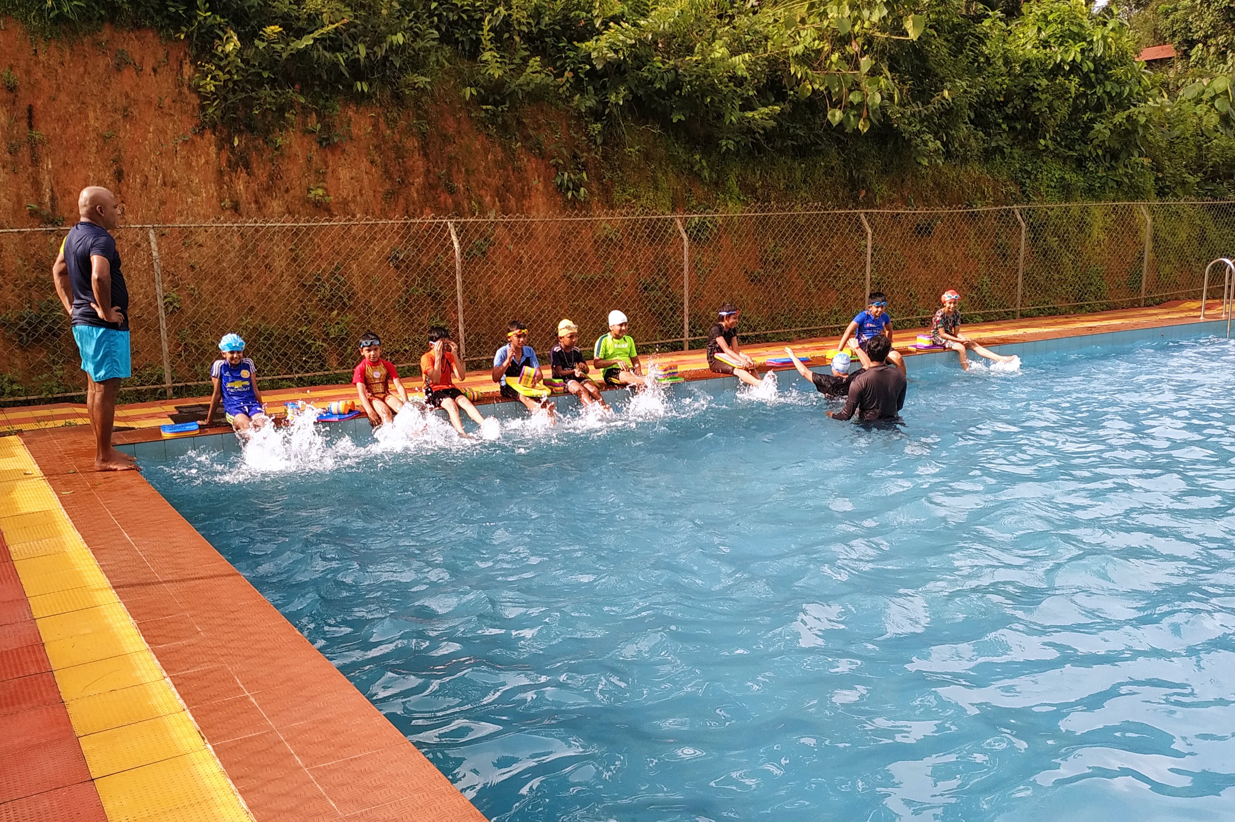 The area of swimming pool is 25x50 swimming classes will be from April to September All students are expected to participate in swimming lessons and should bring costumes and towel along with them.