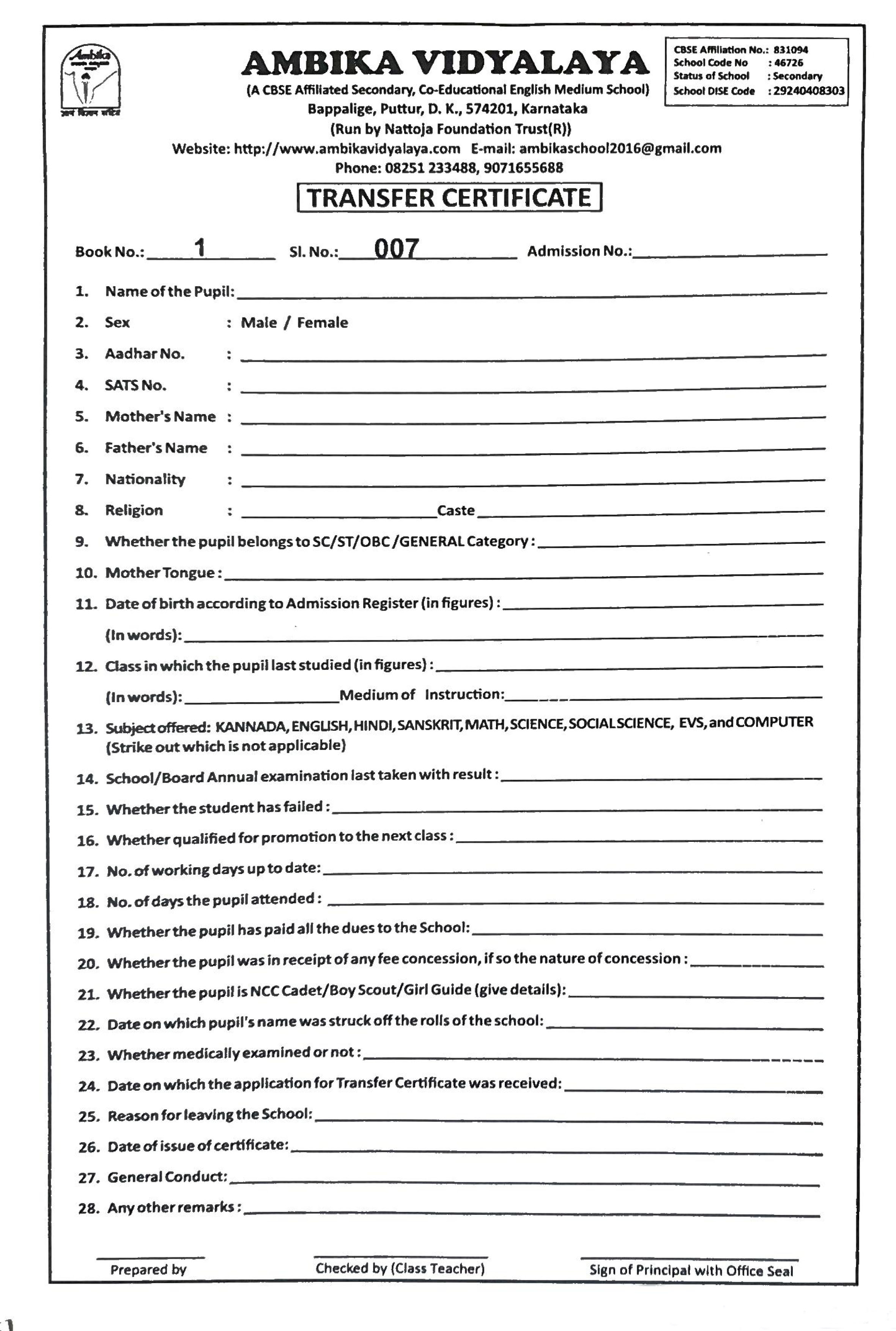 Transfer Certificate